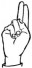 На ћирилици написано БОРИС МЕЧАНИН састоји се из 12 слова [?]. Исписано ћириличном једноручном азбуком за глувонеме: